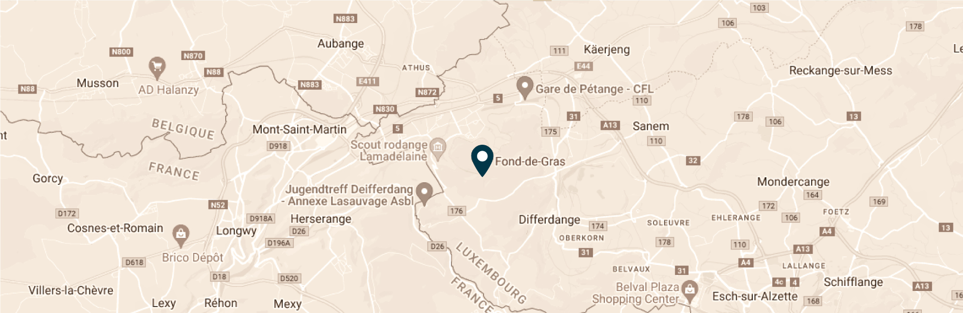 Devenu le Minett Park Fond-de-Gras, ce musée en plein air propose de nombreuses activités complémentaires dont le fil rouge est le minerai de fer. Il comprend : le Fond-de-Gras, le village de Lasauvage, l’ancienne mine à ciel ouvert «Giele Botter» et l’oppidum celtique du Titelberg..
